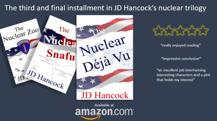 Looking to expand his horizons, JD started writing during the Covid lockdown. Learning about the writing process occupied much of his time and after many, many edits, his novel began to take shape. Producing his trilogy, The Nuclear View, is an accoplishment that will be difficult to top.